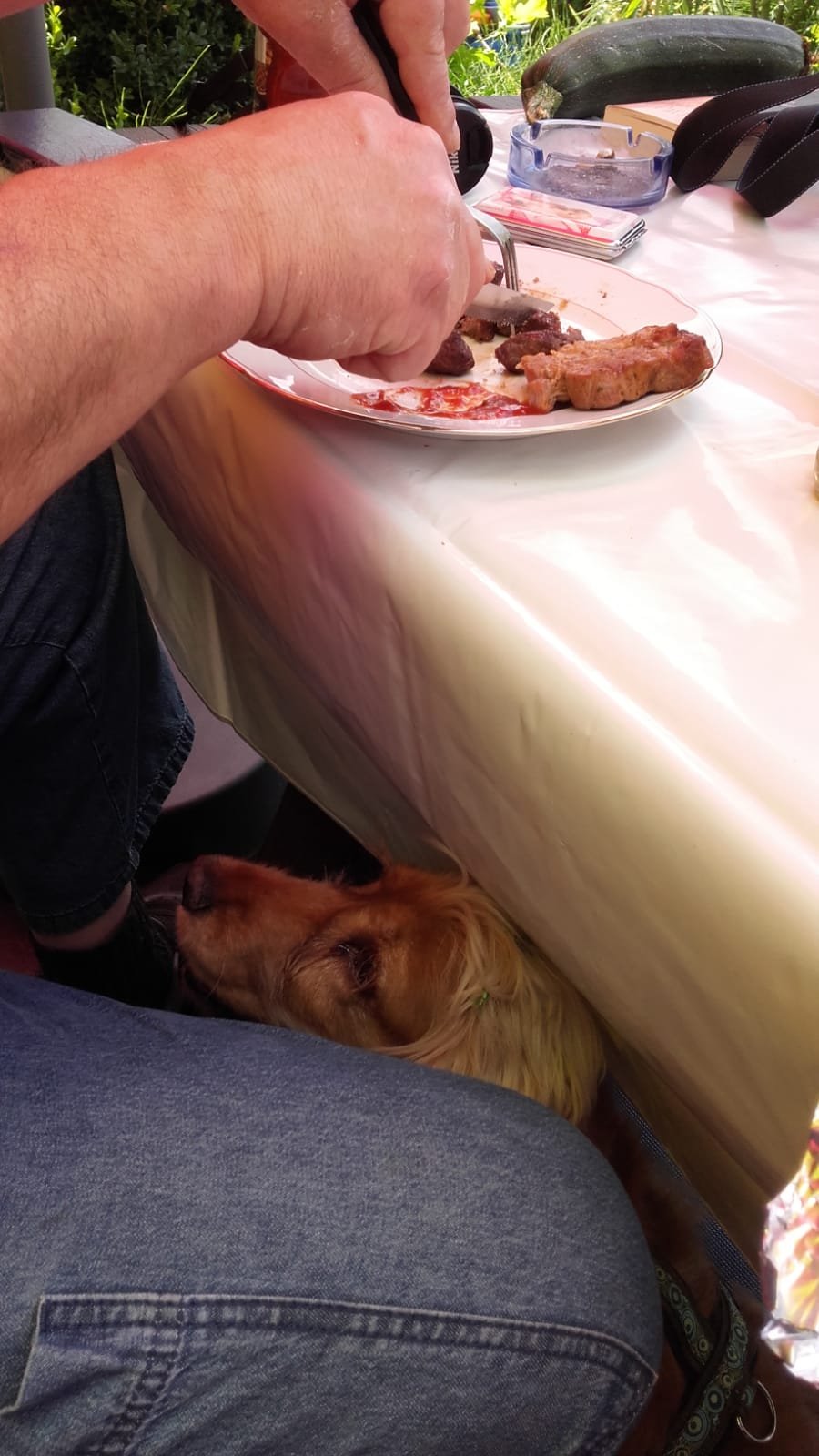 Na klar Herrchen denkt doch an mich- Sogar mein eignes Fleisch in einer eignen Grillschale. Also mal langsam auf mich aufmerksam machen: