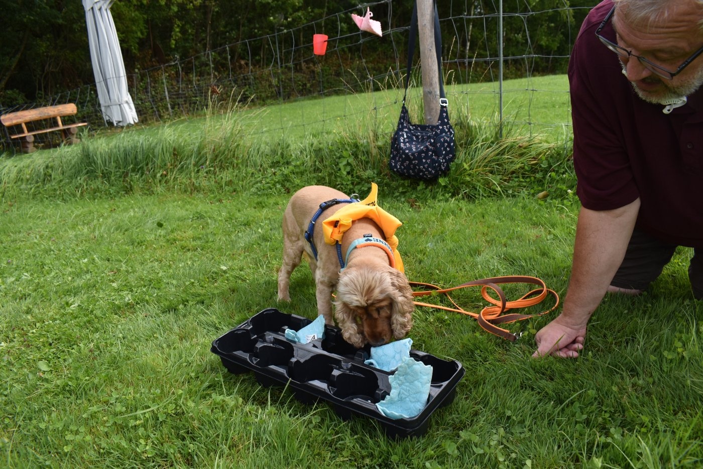 Nächste Aufgabe: Und schaut mal. Herrchen kniet mir zu Füßen: