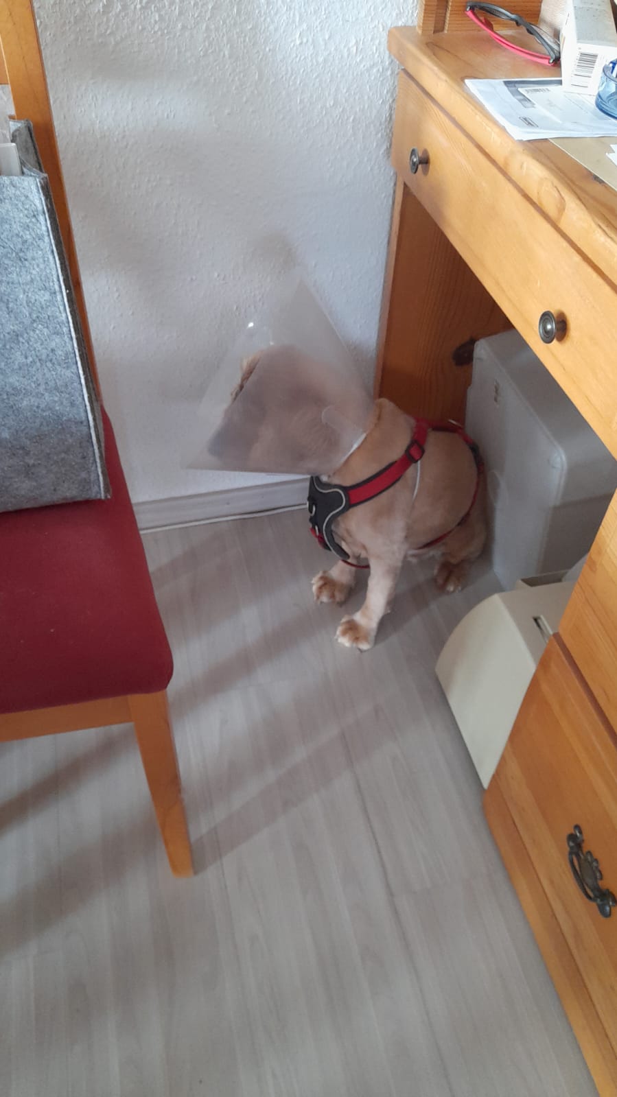 Sie hat es sehr gut überstanden, aber ein paar Tage musste sie mit dem " Schirm" zurechtkommen: