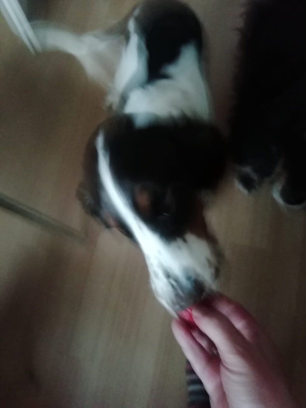 Genau und hat er sich verdient,nachdem er heute gebissen wurde.Zum Glück,hat er das schnell weggesteckt und lässt es sich schmecken und von Oskar und mir verwöhnen