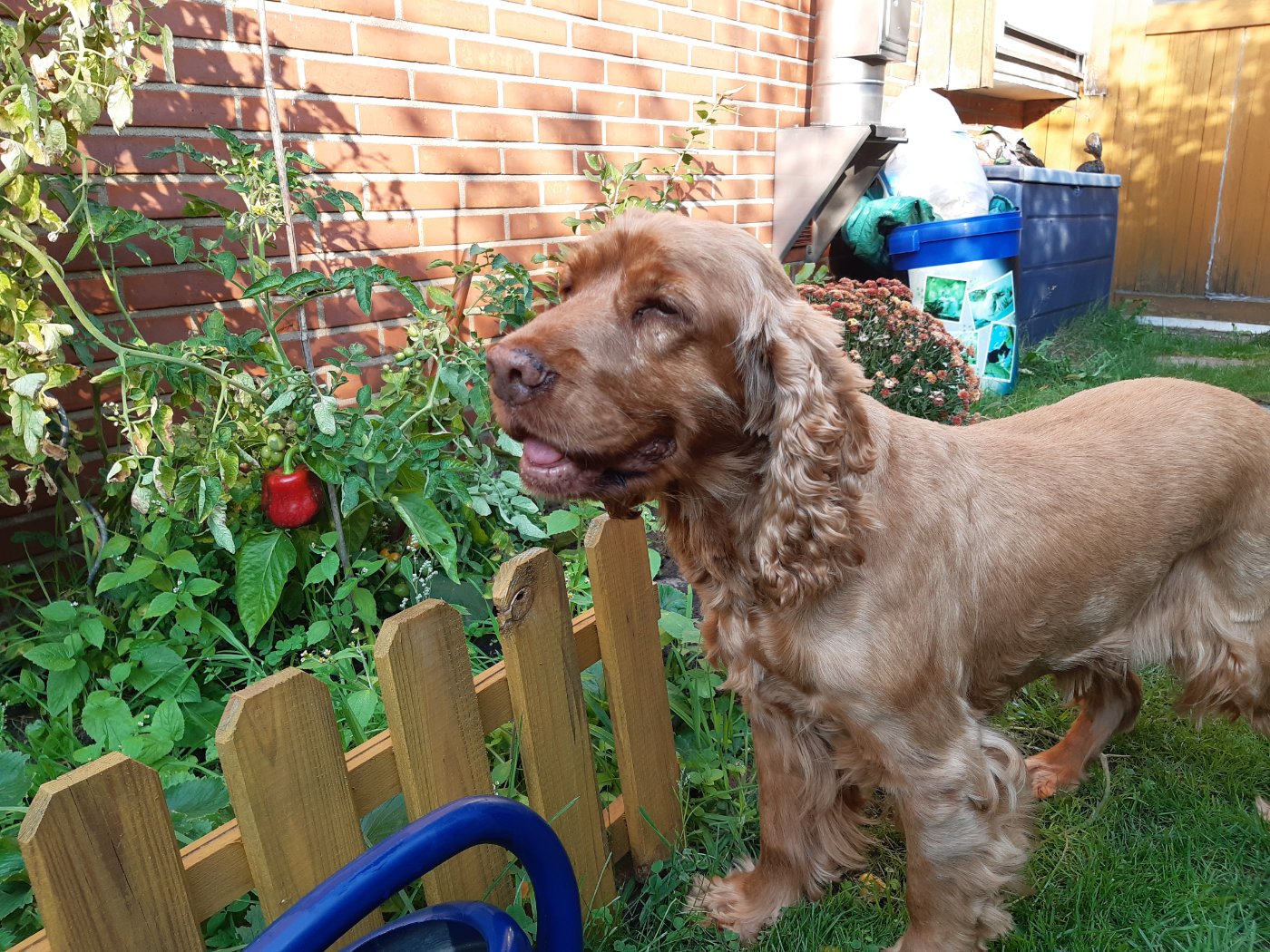 Wir haben am Samstag Elka bei Andreas und Melanie abgeholt. Auf der Nachhausefahrt durfte Elka auf dem Rücksitz neben Insa fahren und ist dann nach der Hälfte eingeschlafen. Zu Hause angekommen ging es erstmal in den Garten ,den sie Schwanz eingezogen vorsichtig erkundet hat. Dann hat sie sich zwischen Holzunterstand und Schuppen geschummelt und sich am Ende dieses mega schmalen Ganges in/unter die Hecke gelegt. Alle Bestechungsversuche mit Leberwurst am Besenstiels und sowas halfen nichts ,sie kam nicht raus. Nach knapp zwei Stunden sind wir von der anderen Seite ran. Wir mussten den Zaun ein bisschen schrotten und konnten sie dann da rausholen.