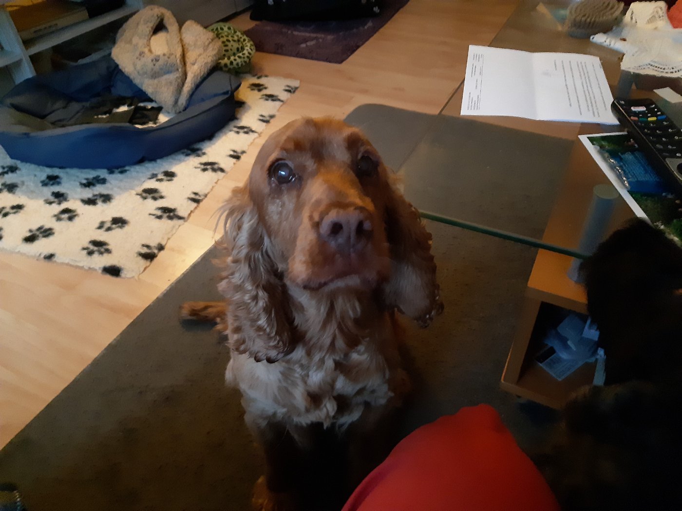 Treudoof gucken und hoffen was abzukriegen wenn ich ein Käsebrot esse hat sie schon gelernt.