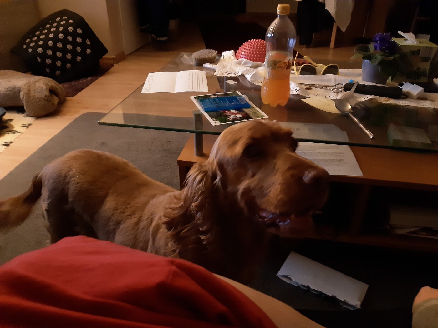 Da sie (noch)keine Treppen geht,aber schnell gemerkt hat ,dass abends immer ein Familienmitglied nach dem anderen verschwindet,lag sie plötzlich mitten in den Schuhen die vor der Treppe stehen. Die hab ich dann mal weg geräumt und ihr ein Kissen dahin gelegt. Da verzieht sie sich jetzt immer hin wenn sie ihre Ruhe haben will.