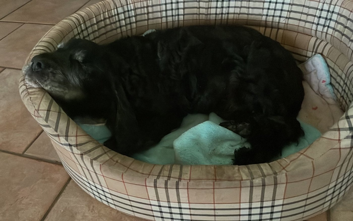 Knuti hat zu Weihnachten ein neues Körbchen bekommen und fühlt sich anscheinend Cockerwohl.