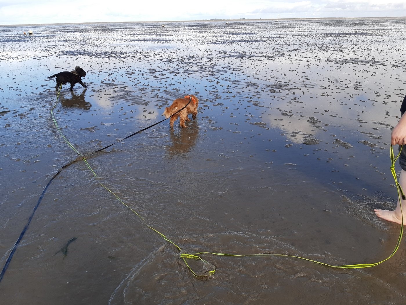 Wir waren,wie bei Dana schon geschieden, heute in Sahlenburg am Hundestrand. Vor zwei Wochen war Insa mit ner Freundin schon mal alleine mit Flo dort( weil Dana ohne mich ja nicht läuft). Da erzählte sie schon ,dass sie noch nie so einen glücklichen Hund gesehen hat wie Flo im Watt.