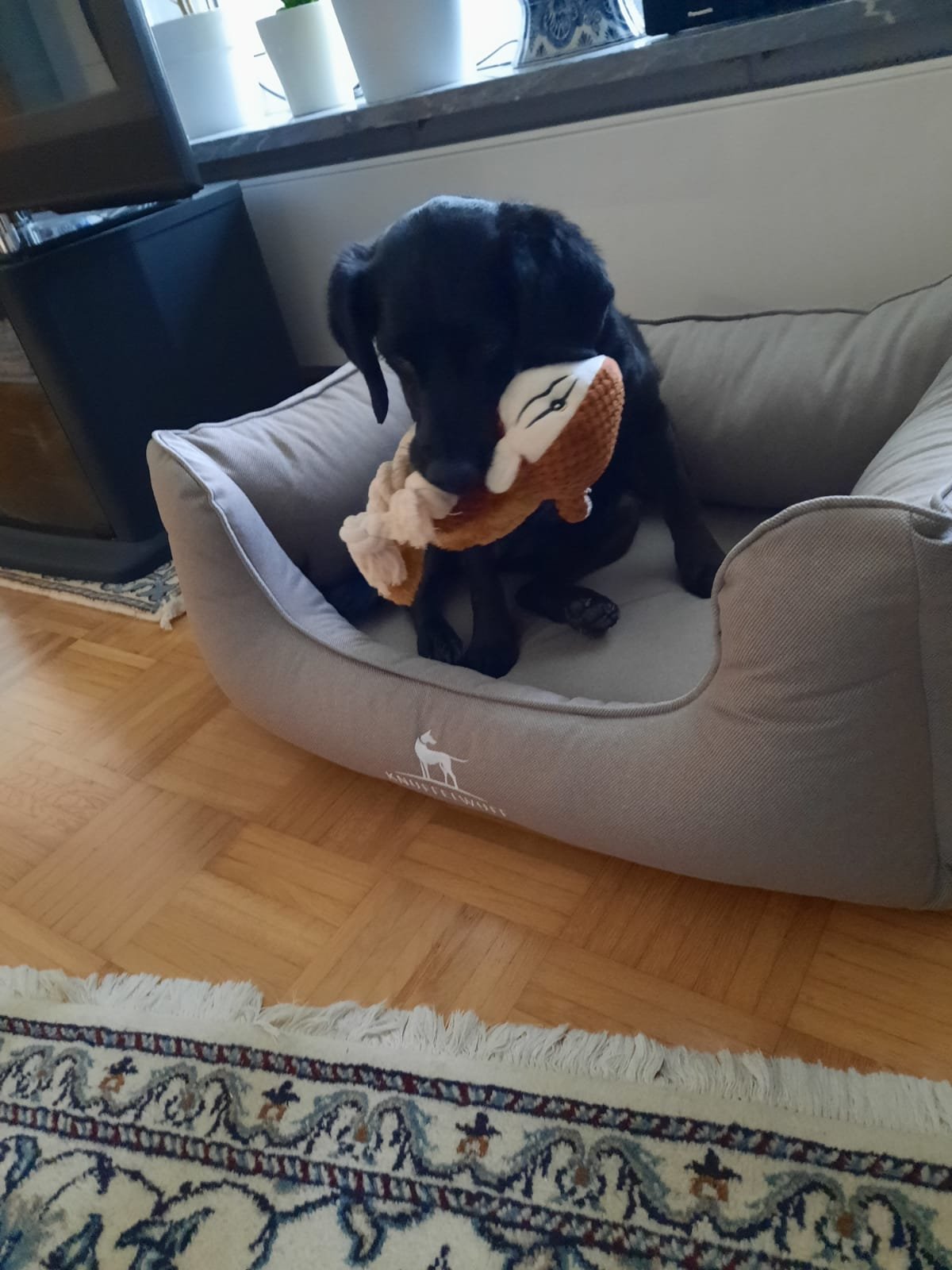 Nach einer Woche habe ich eine neue Meldung einer sehr glücklichen Kleinfamilie bekommen. Bonnie geht es gut. Sie hat ein neues Körbchen und ein neues Kuscheltier bekommen und auch schon die erste Hundeschulstunde hinter sich gebracht. Mit dem Ergebnis das Frauchen und Herrchen jetzt ganz viel lernen müssen