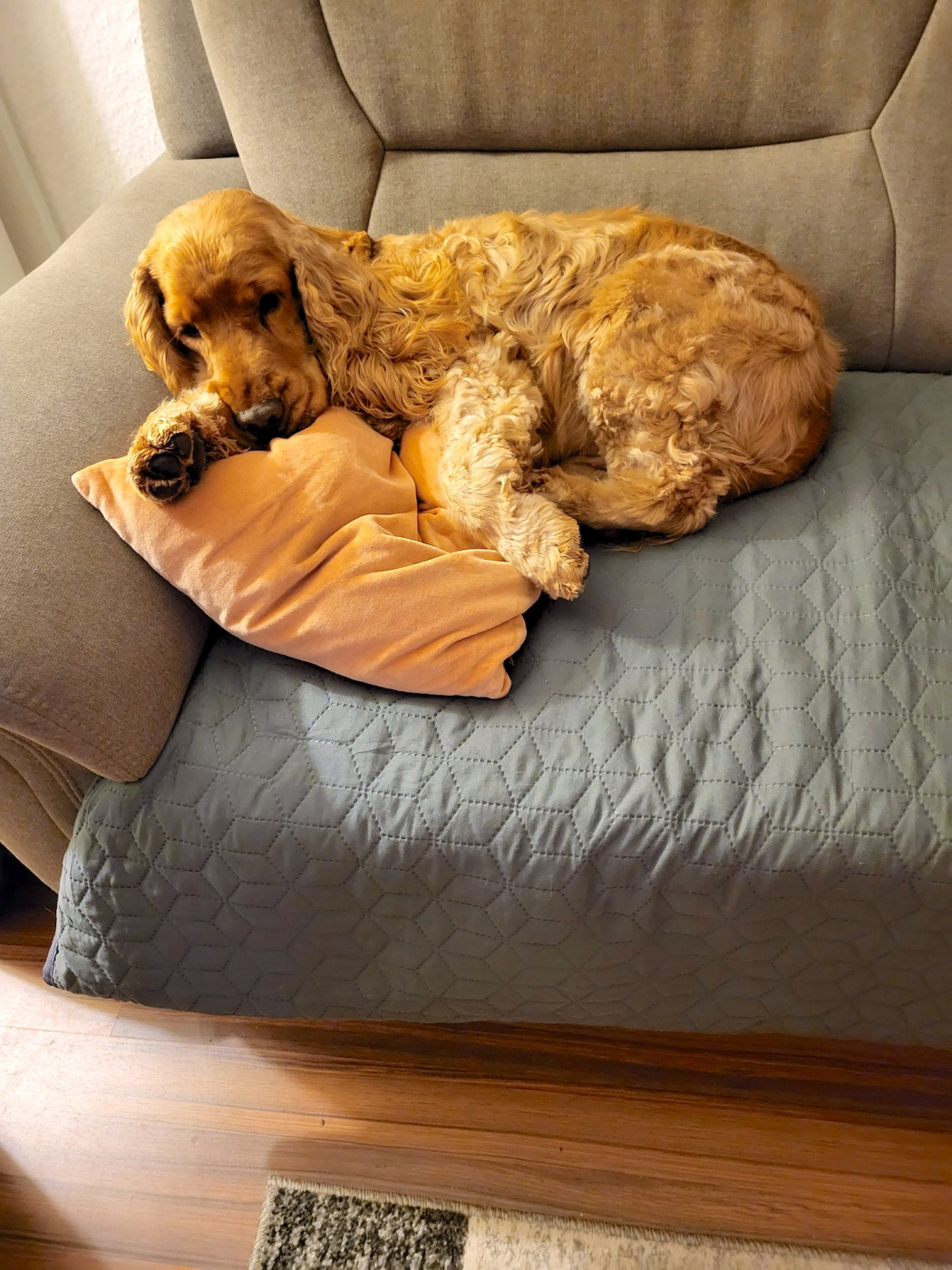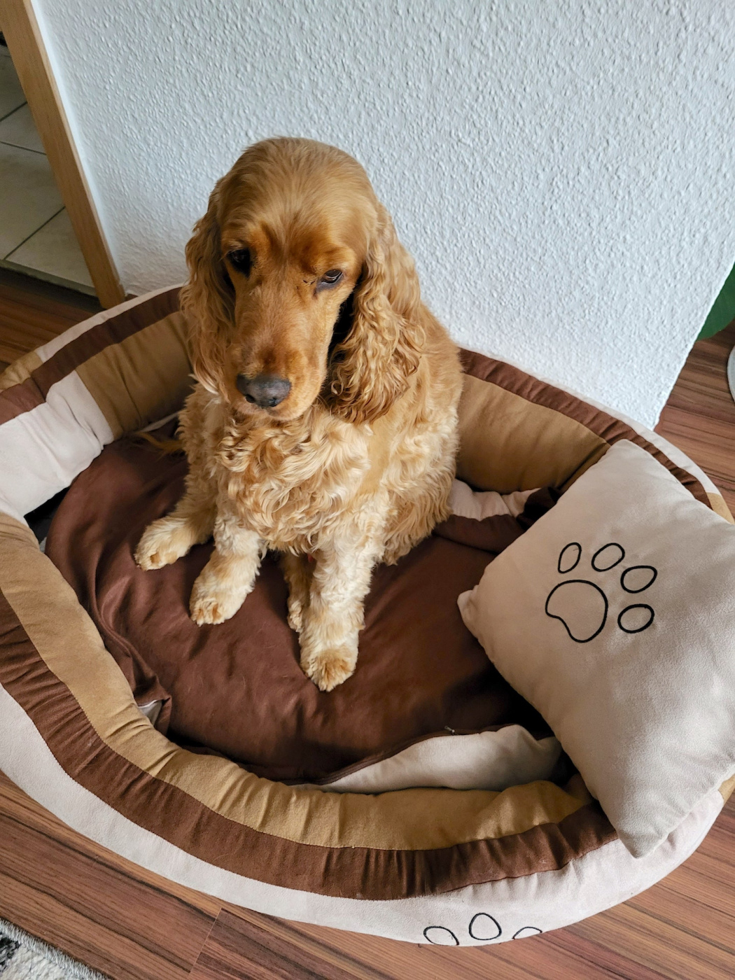 Bentley ist ein lieber, verschmuster und anhänglicher Schatz sei, der aber auch seinen ganz eigenen Cocker-Sturkopf hat. Er bleibt nicht gern allein, doch wenn's unbedingt sein muss, dann klappt es schon. Lieber ist es ihm jedoch, wenn er um seine Familie herumwuseln und mit ihnen kuscheln kann. Zwei Zähne mussten gezogen werden und eine Ellbogendysplasie wurde festgestellt. Doch Bentley lässt sich davon nicht beeindrucken, er ist immer gut gelaunt.
