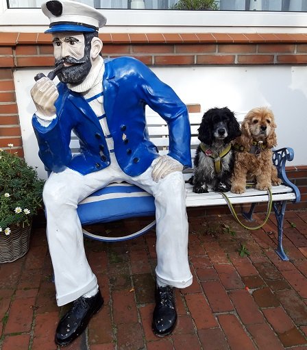 Im September sind Noa und Trolli mit meinen Eltern nach Juist gefahren. Dass sie dafür mit dem Zug und der Fähre fahren mussten, war für die beiden kein Problem. Trolli hat während der Hinfahrt sogar einem jungen Paar mit Kleinkind eine Verschnaufpause verschafft, weil das Kind keine Zeit mehr zum Weinen hatte, als sie von Bremen bis Oldenburg Trolli streicheln durfte.