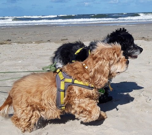 Im September sind Noa und Trolli mit meinen Eltern nach Juist gefahren. Dass sie dafür mit dem Zug und der Fähre fahren mussten, war für die beiden kein Problem. Trolli hat während der Hinfahrt sogar einem jungen Paar mit Kleinkind eine Verschnaufpause verschafft, weil das Kind keine Zeit mehr zum Weinen hatte, als sie von Bremen bis Oldenburg Trolli streicheln durfte.