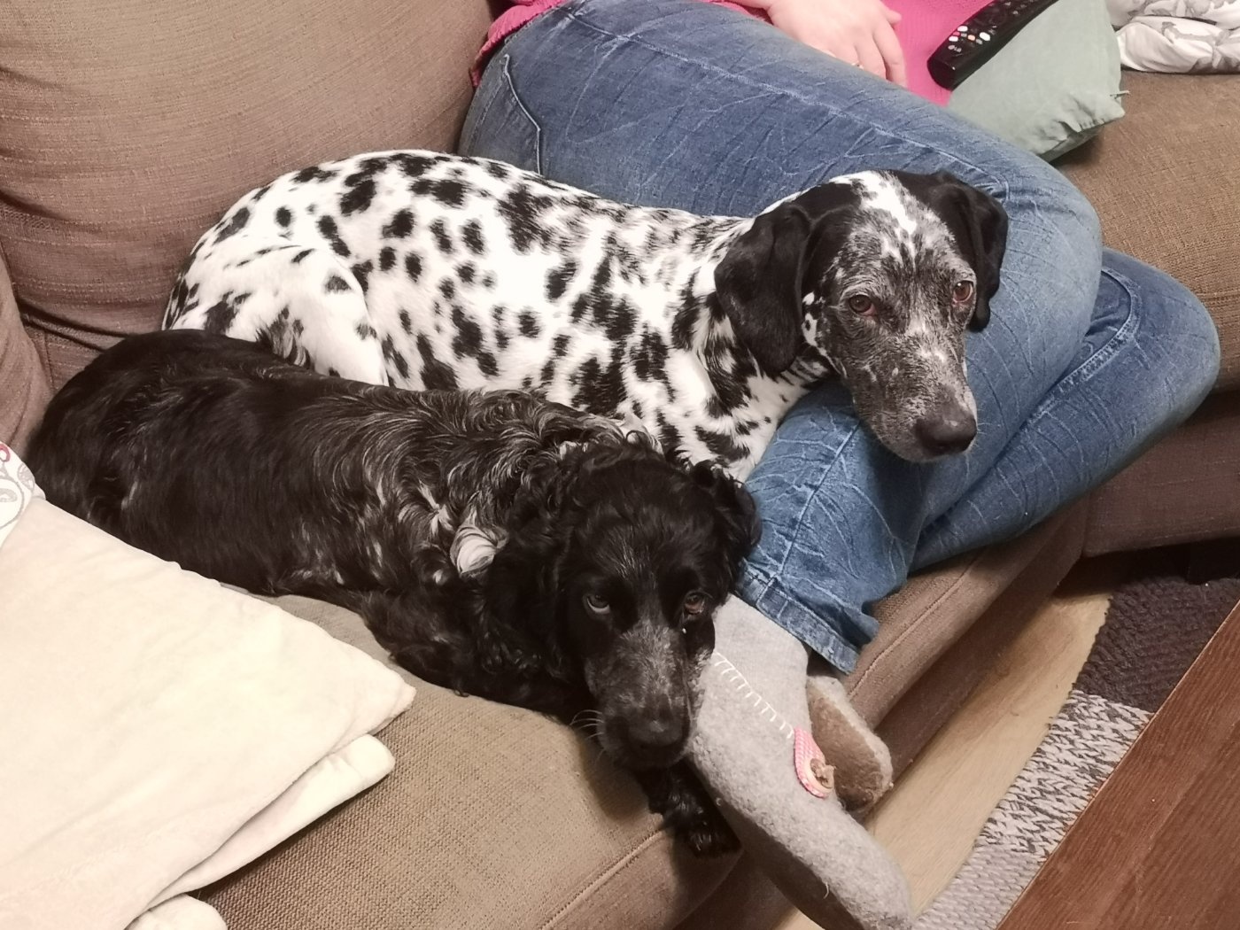 Heute will ich kurz berichten: die erste Nacht war entspannter als gedacht. Beide Hunde haben bei mir im Bett mitgeschlafen, zusammen mit unserer alten Katze. Katzen findet Lilly toll, da unsere mit ihr kuscheln wollen. Nachts waren wir mit schleppleine einmal im Garten, aber die Dunkelheit mag sie nicht. Morgens wurde ich dann dadurch wach, dass Lilly auf mir stand und mir das Gesicht abgeleckt wurde. Danach war Herrchen dran, den man heute Nacht anknurren musste als er nach der Toilette wieder ins Bett wollte.