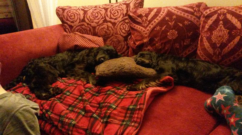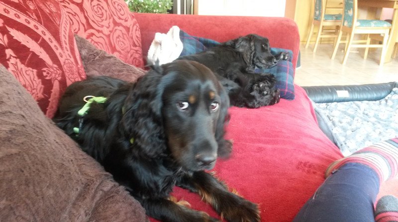 Wir wollen uns anziehen, aber da hängen immer kleine Cocker an den Ärmeln und Hosenbeinen. Und die Hausschuhe am besten immer an den Füßen behalten.
