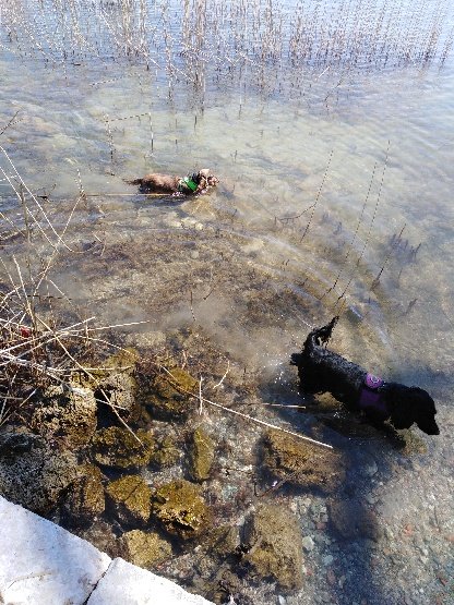Ich gehe an sich gerne an der Isar, aber nachdem Leo damals in einen Strudel geraten ist und ich schon dachte er sei tot und Pami auch eine echte Wasserratte und Entenjägerin ist, traue ich mich nicht mehr so recht an den Flaucher. Früher waren wir auch bei Baierbrunn an der Isar, aber auch da sind böse Strudel. Ich hab einfach Angst um die Mäuse. Deshalb gehen wir da nur sehr selten. Im Sommer ist es in München auch nicht so gut wegen der Grillparties und der Badegäste. Die freuen sich nicht besonders, wenn ihnen ein Hund ins Gehege kommt und meine Cocker fressen dann auch gerne die Grillabfälle (Knochen usw.