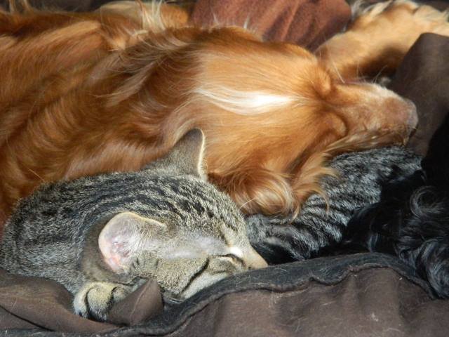 Elsy liebt es, mit der Katze zu kuscheln... oder besser gesagt: Frodo liebt es, mit Elsy zu kuscheln
