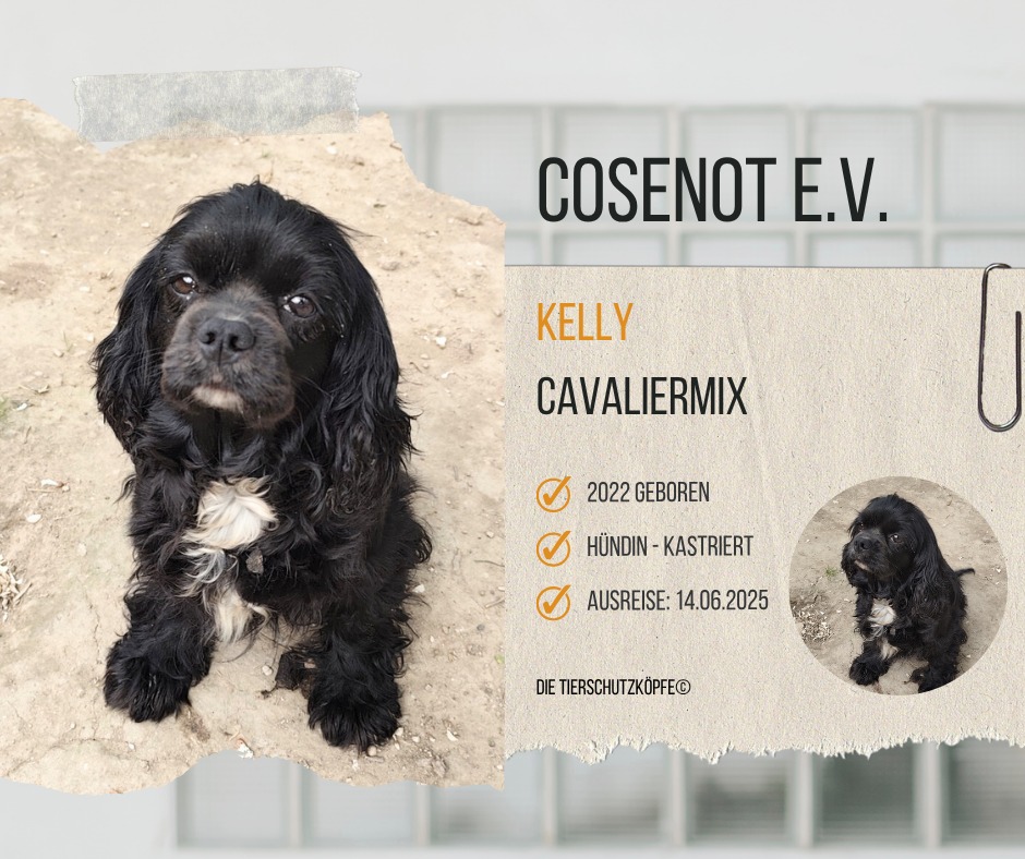Kelly, Cavalier King CharlesHündin, schwarz mit loh, geboren März 22, kastriert