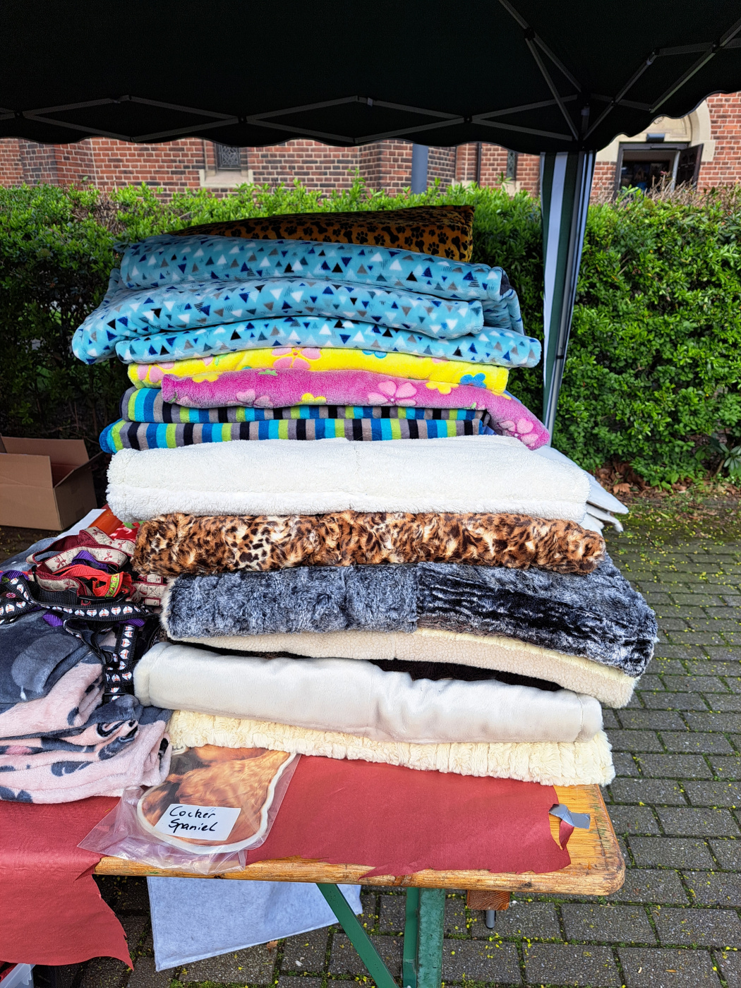 Bilder von dem gestrigen Tag einstellen. Es war wirklich schön mit Melanie und Gerda den Stand gestern zu wuppen. 560 Euronen für die Cockers ist doch was finde ich. Danke auch an Martina und Annette die uns das ermöglicht haben. Das Wetter spielte mit und es kamen auch Leute die zielstrebig zu uns kamen um Gerdas Decken zu kaufen, wundert mich nicht, die sind echt toll, und auch um unsere Kekse zu kaufen. Die wurden von einer Dame die auch ein Cockerchen hat allesamt aufgekauft und eine Decke hat sie auch noch mitgenommen.