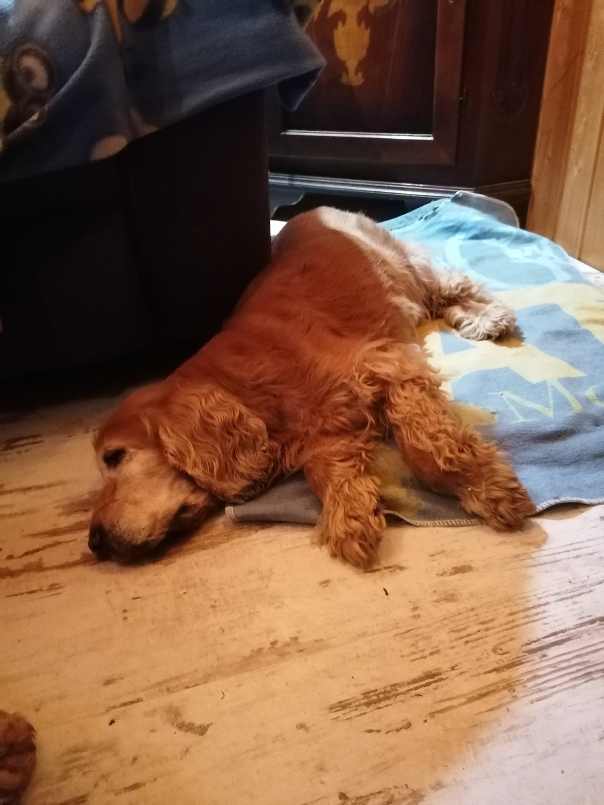 Sie wird ja leider recht früh von mir geweckt, aber nach dem frühen Frühstück legt sie sich gern wieder hin. Manchmal bring ich sie noch mal hoch und dann schläft sie den halben Vormittag