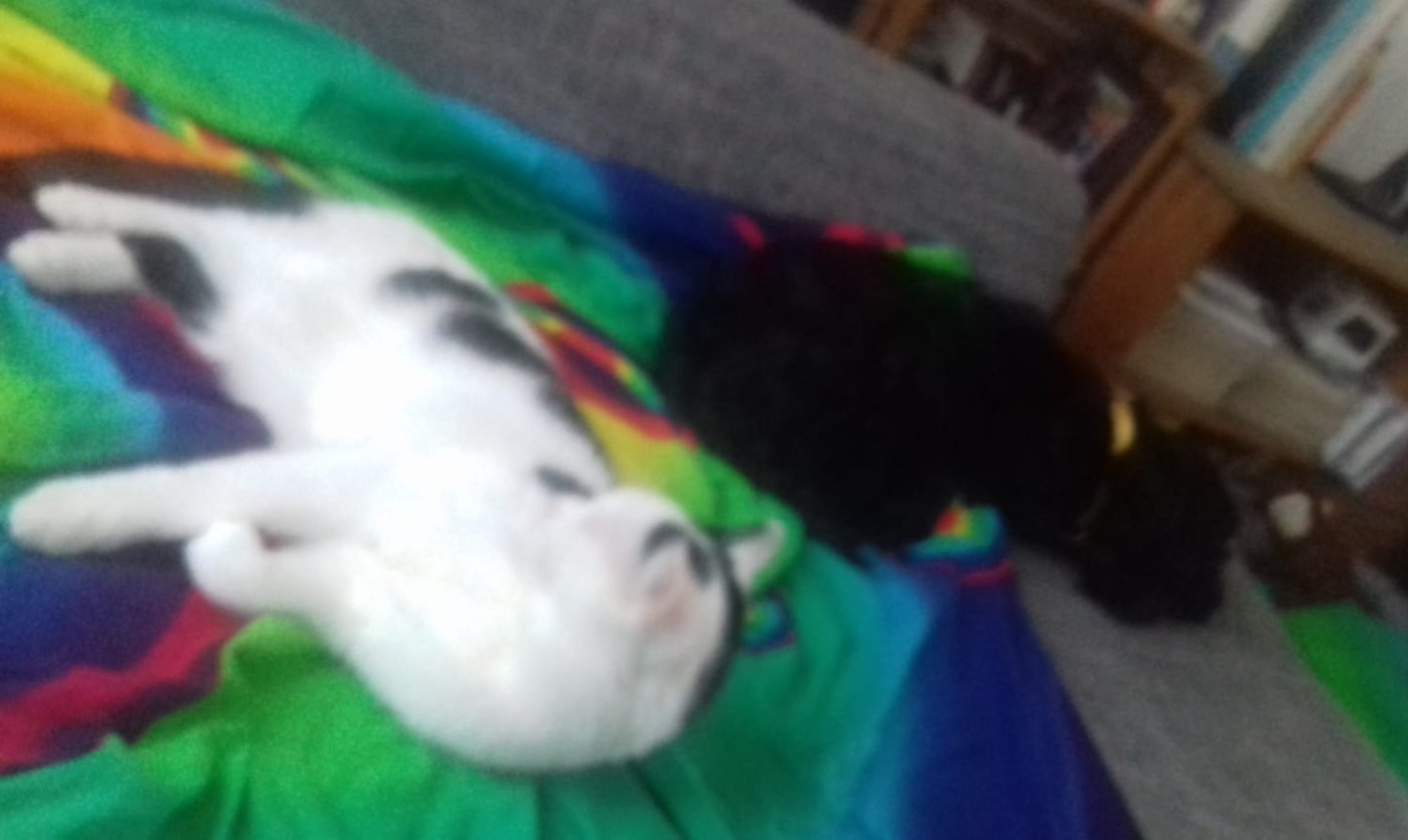 Sie versteht sich gut mit der bereits in der Endstelle lebenden Katze. Ok. Auf dem Bild sieht es nicht so aus, als wäre es Liebe auf den ersten Blick, aber man respektiert und arrangiert sich scheinbar