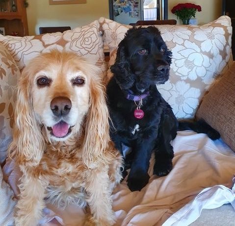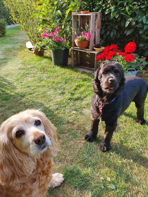 Auch unser Terry hat ein wunderbares Zuhause gefunden, und auch seine neue Familie hat uns Nachrichten und einige Bilder geschickt. Terry heißt jetzt Lenny und lebt mit einer Hundefreundin und Katzen zusammen. Seine neue Freundin, eine Cockerdame, zeigt ihm den Weg und hilft ihm erfolgreich dabei, sich einzuleben. Lenny findet alles Neue sehr spannend. An der Leine läuft er noch etwas ängstlich, aber seine Familie ist sich sicher, dass sich das legen wird. Sie lassen ihm Zeit, er soll sein neues Leben in seinem Tempo erobern.