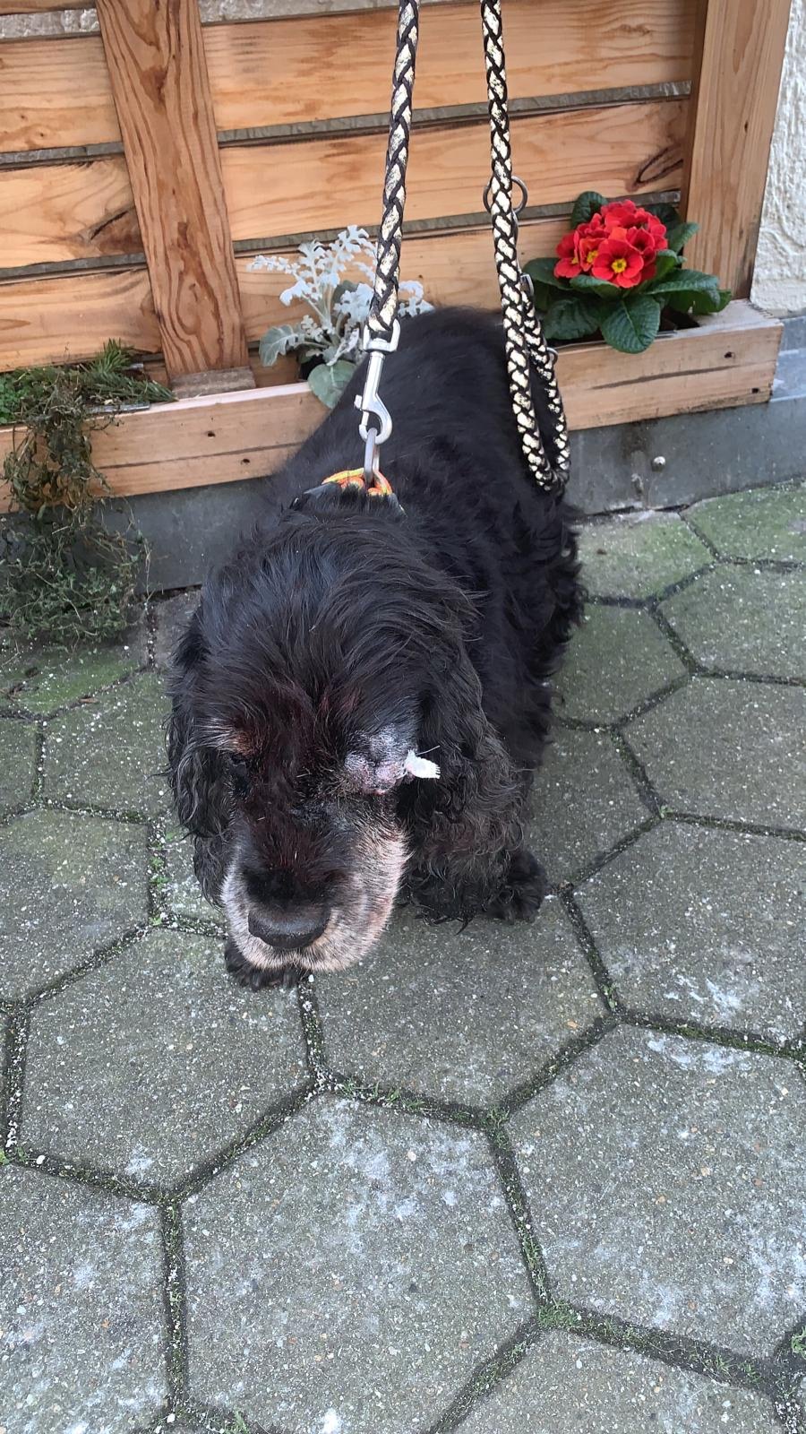Die OP ist soweit gut verlaufen, Knuti ist durch seine Blind-und Taubheit mit dem zusätzlichen Tragen der Halskrause sehr orientierungslos,