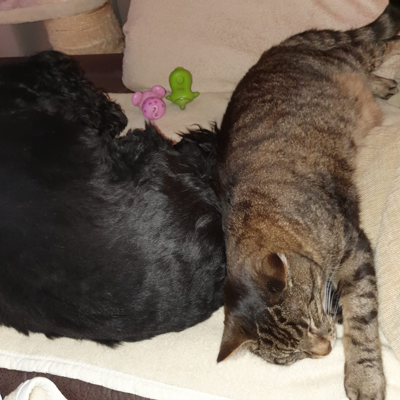 Ich hab nur in der Diele gelegen und auf sie gewartet,aber abends bin ich doch zu Herrchen ins Bett denn er ist auch so lieb zu mir und Jule liegt ja auch da.