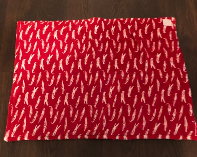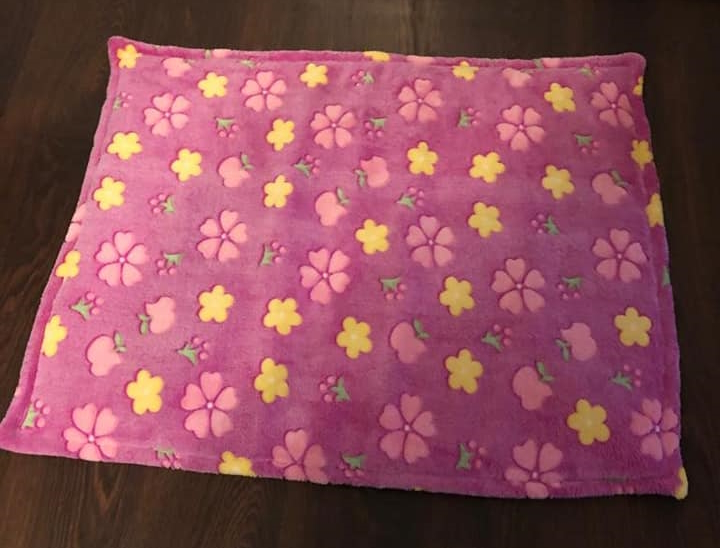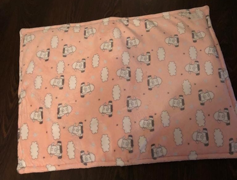 Die Decken kosten 25 Euro und haben eine Größe von ca 70x100 cm. Sie sind mit dickem Vlies unterlegt und rundherum eingefasst. Sie sind waschbar bei 40 Grad und Trockner geeignet.