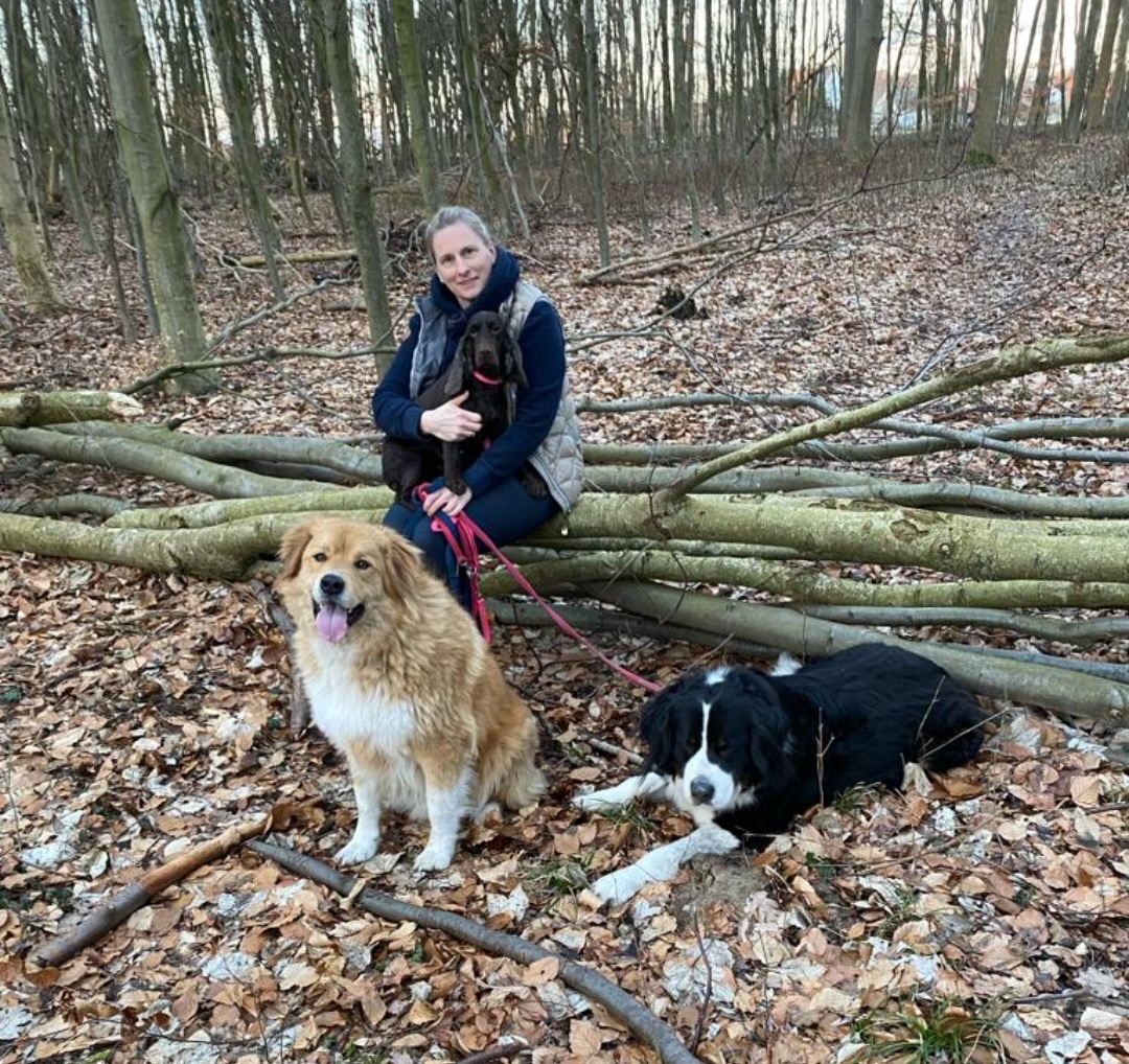 Ruby hat sich schon gut eingelebt in ihrem neuen Zuhause. Mit ihren Hundekumpels Sam und Teddy kommt sie gut zurecht und die Jungs haben sie direkt adoptiert.